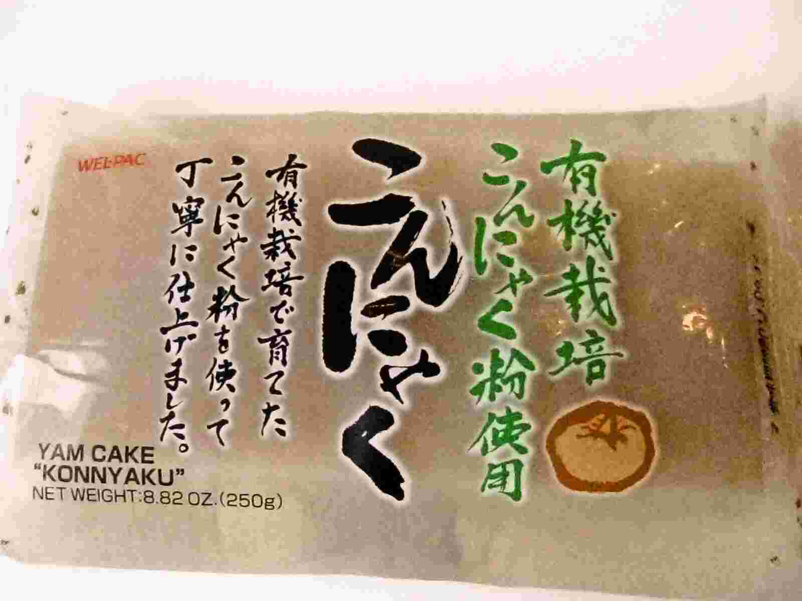 When growing up, I was repeatedly told that konnyaku would cleanse your intestines and was good when eating shellfish (to get rid of sand). Konnyaku yam cake is 97% water and the other 3% is glucomannan, which is non-soluble fiber in konnyaku products. Konnyaku controls absorption of cholesterol, carbohydrates and fat (good for prevention of diabetes and hyperlipidemia) while sending a signal that your stomach is getting full, and carries away harmful substances from your body. It is low in calories (5-7 kcal/100 g) and is known as a food of choice for dieting.