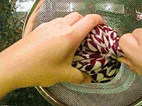 When beans sink toward the bottom, discard water by tilting container or scooping water with ladle.