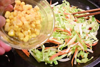 - For toppings, any vegetable works great -- cabbage and moyashi bean sprouts (photo at right) are all-year-round popular choices. Asparagus (photo below) is a delicious choice for spring.