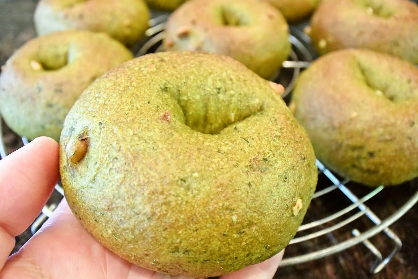 One of our bagels takes advantage of kale for a deeper flavor, which is especially noticeable when toasted, while toasting also intensifies the crunch of walnuts.